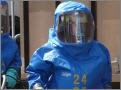 Bei der Übung bekamen wir die unterschiedlichen Schutzanzüge - wir dachten erst Marsmenschen waren gelandet - in Aktion zu sehen. Wir lernten, dass eine Verständigung für die Träger dieser Anzüge nur über Funk direkt in den Anzug möglich ist und dass die Luft in den Sauerstoffflaschen allein schon ein besonnenes aber rasches Handeln erforderlich macht und vieles, vieles mehr. Die Arbeit der Freiwilligen Feuerwehr besteht eben nicht nur im Bergen von Bienenvölkern.........